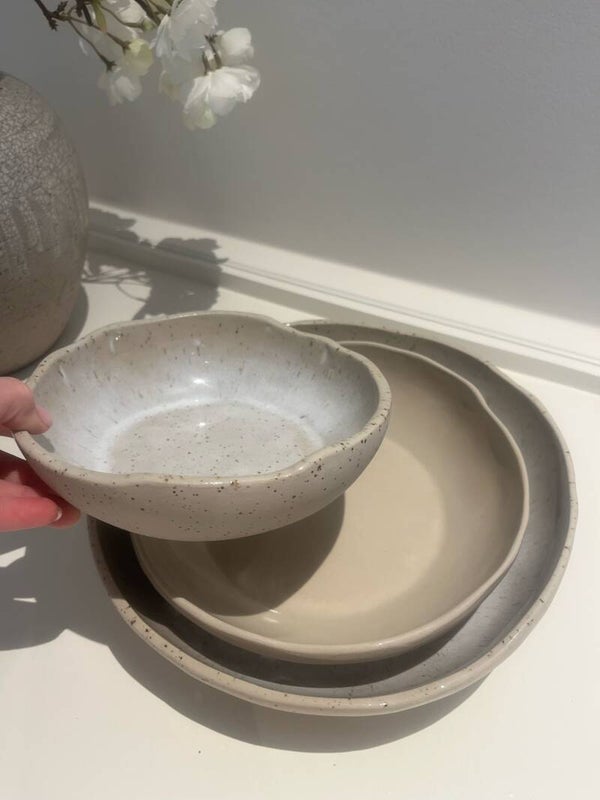 In deze workshop maak je zelf drie schalen in opbouwtechniek. We starten van kleiplaten en bouwen stap voor stap je eigen set op, volledig met de hand gevormd. ✨