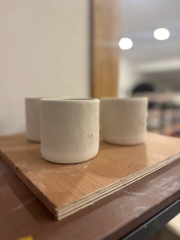 Na het drogen worden de tassen gebakken in de oven en kan je ze later komen glazuren tijdens een aparte glazuurworkshop om ze volledig af te werken.